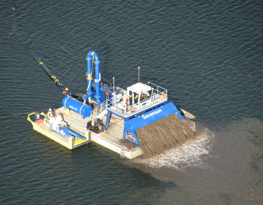 Sevenson hydraulically dredged over 2.14M CY of contaminated sediment; placed a 2.3M CY active sediment cap, which consisted of sand and rock in 29 different areas of Onondaga Lake with a custom-built slurry system; and installed 1,600 LF of sheet pile wall in sediment with low shear stress. Sevenson mechanically removed an additional 33,740 CY of contaminated material from a wetland/bank area along the shoreline and placed a 900,000 CY active sand cap consisting of sand/gravelly sand and GAC for bank controls. Safe and successful project completion earned Sevenson four awards/certificates: 2014 WEDA Annual Safety Award; 2017 Dredging and Port Construction Innovation Award – Innovation in Project Design for Inland Dredging presented by HIS Markit; 2017 WEDA Environmental Excellence Award for Environmental Dredging; 2018 Outstanding Civil Engineering Achievement Award from Syracuse section of ASCE.