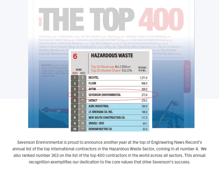 Sevenson Environmental Again Ranks as a Top 5 Contractor in Hazardous Waste Market for 2023